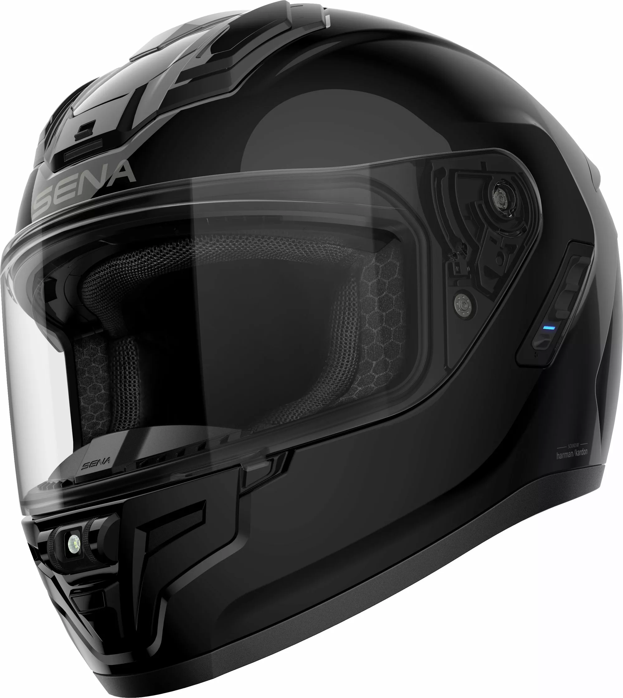 Composite fiberglass shell. Fog resistant shield. Pinlock ready shield. D-ring chin strap. ECE22:06. 2nd Generation Harman Kardon. Bluetooth 5.3. - Mesh Intercom 3.0. - Range 2.0 Km in open terrain. - Open Mesh, 6 channels, virtually unlimited number of participants. - Group Mesh, 24 participants. Advanced Noise Control™. Professional-grade 2nd Generation Harman Kardon speakers.Talk Time : 35 hours. Charging Time: 2.5 hours. Weight : 1690 ± 50 g (M). Advanced AI-based Noise Reduction (AINR) technology. Features a front LED flashlight and rear LEDs that function as running and brake lights, enhancing visibility and safety for every rider