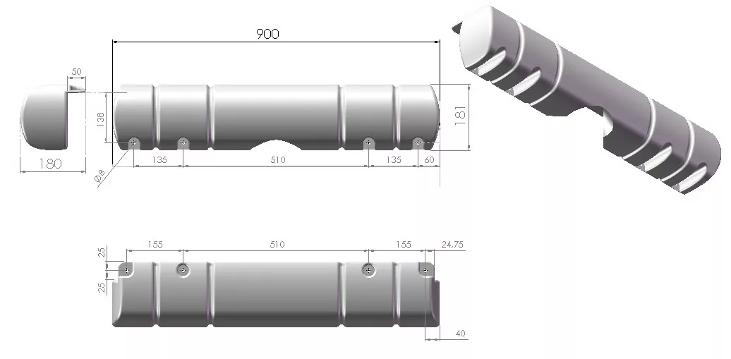 Dan-Fender Multi Dock tummansininen törmäyssuoja Koko 900 x 181 x 130/180mm