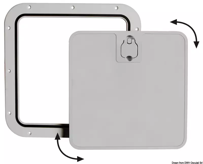 Very sturdy anti-skid surface; splash-proof lid closure with neoprene seal; flush mounting; they can be used as hatches for lockers, fishing containers or as boxroom hatches or bayonet front... Lue lisää